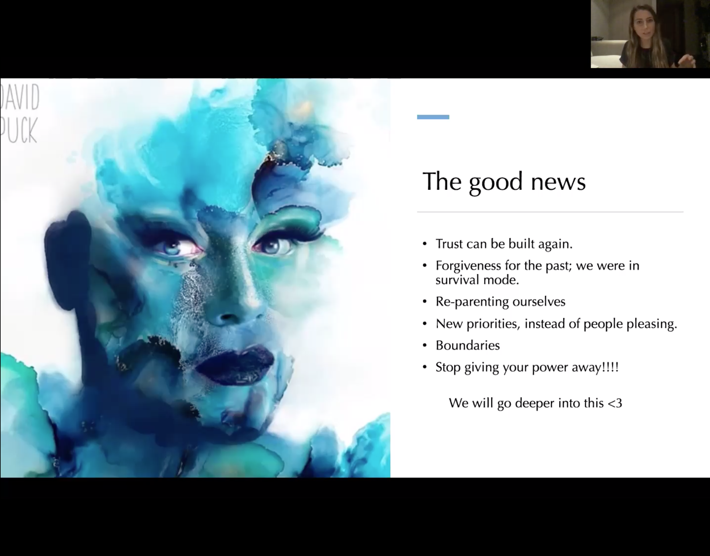 The seminar explored topics including inner child work, trauma informed therapy, working with ethical healthcare practitioners, the neurobiology of trauma, parts of self, shadow work, trauma bonding, societal and parental conditioning, addiction and eating disorders, sexual abuse and fragmentation, regulating the nervous system, bullying and the underlying mechanisms at play, the drama triangle, empowerment, and boundaries.